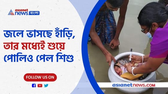 জলের মধ্যে ভাসছে হাঁড়ি আর তার মধ্যেই শুয়ে পোলিও (Polio vaccine) পেল এক শিশু। এমনই ছবি দেখা গেল দক্ষিণ ২৪ পরগনার ক্যানিং- এ। এই ছবি প্রকাশ্যে আসতেই তা ভাইরাল (Viral) হয়ে যায়। জলে হাঁড়ি ভাসিয়ে তাতে করেই শিশুকে পোলিও টিকা দেওয়াতে নিয়ে যায় শিশুর বাবা। হাঁটু জলে দাড়িয়েই পোলিও দিতে দেখা যায় এক সাস্থ্যকর্মীকে। টানা বৃষ্টিতে জলমগ্ন ক্যানিং এর অধিকাংশ জায়গা, আর সেখানেই দেখা গিয়েছে এমন ছবি।