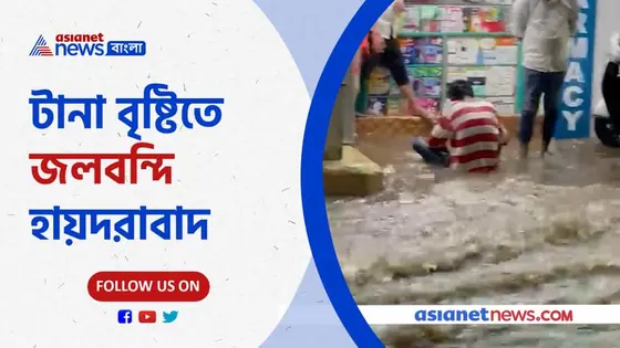 জলের তোড়ে ভেসে যাচ্ছে এক ব্যক্তি, টানা বৃষ্টিতে ভয়াবহ পরিস্থিতি হায়দরাবাদে