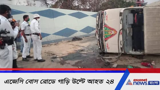 এজেসি বোস রোড ফ্লাইওভারে ভয়াবহ দুর্ঘটনা, গাড়ি উল্টে আহত ২৪