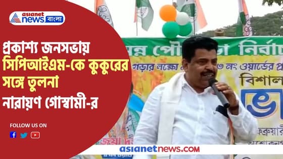 রবিবার অশোকনগর পৌরসভার ১ এবং ২৩ নম্বর ওয়ার্ডের তৃণমূল প্রার্থীর সমর্থনে একটি জনসভার আয়োজন করা হয়েছিল সেই মঞ্চে বক্তব্য রাখতে গিয়ে সিপিএমের বিরুদ্ধে সুর চড়াতে গিয়ে বিধায়ক বলেন সিপিএমের অবস্থা কেমন জানেন? বলেই একটু থেমে গিয়ে তিনি বলেন "মাফ করবেন,আমি "উপমা,, দেওয়ার জন্য বলছি - এটা একটি গল্প - আমি ওই রাজনৈতিক দলকে বলছি না।এই বলেই বিধায়ক একদম গল্পের ঢঙে বলতে শুরু করলেন- "দেখবেন কুকুরের পায়ে বা পিঠে ঘা হলে নিজেই চেটে চেটে সারিইয়ে কিন্তু মাথায় ঘা হলে তা আর ঠিক করতে পারে না তারপরে মারা যায়।আর বামফ্রন্ট নামে বস্তুর ২০১১ সালের পর তাদের মাথায় ঘা হয়েছে এ আর বাঁচবে না। এই নিয়ে জনসভা শেষে সাংবাদিকদের প্রশ্নের উত্তরেও একই কথা জানিয়ে বিধায়ক নারায়ন গোস্বামী জানান তিনি সিপিআইএমকে কুকুর বলেননি উদাহরণস্বরূপ একটি গল্প বলেছেন মাত্র। এই প্রসঙ্গে সিপিআইএমের অশোকনগরে প্রাক্তন বিধায়ক তথা বামফ্রন্টের নেতা সত্যসেবী কর বলেন যে যার রুচি সংস্কৃতি অনুযায়ী বক্তব্য রাখেন - কথা বলেন।আমি ওনাকে বলবো "উনি তো এখানে নতুন, এইখানকার যারা তৃণমূলের নেতা আছেন তারা ওনাকে একটু সৎ পরামর্শ দিক কারণ এটা অশোকনগরের সংস্কৃতি নয়। এইভাবে একটি তুলনা টানা তাতে তৃণমূলের দৈন্যতাকেই তিনি প্রকাশ করছেন। পাশাপাশি তিনি বিধায়কের নাম না করে কটাক্ষের সুরে বলেন আমরা যদি মরেই যাই তাহলে মৃতপ্রায় একটি দলকে নিয়ে ওনার এত উৎকণ্ঠা কিসের।