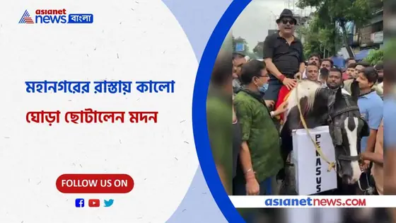 ঘোড় সওয়ারি মদন, পেগাসস ইস্যু -র প্রতিবাদ জানালেন মুখে কালো কাপড় বেঁধে