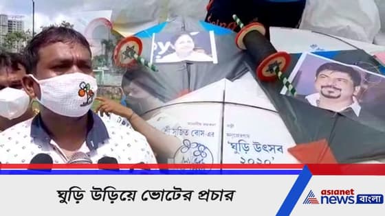 - ঘুড়ি উড়িয়ে চলছে ভোটের প্রচার