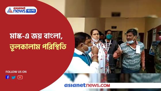 তৃণমূলের এজেন্টের মুখে মাস্ক-এ লেখা জয় বাংলা। এমনই ছবি ধরা পড়ল বেহালা পূর্ব ১১৬ নম্বর ওয়ার্ডে। এই ঘটনা ঘিরে তুলকালাম পরিস্থিতি।