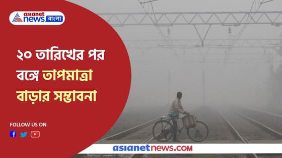 আগামী ৪ দিন দক্ষিণবঙ্গে শুষ্ক আবহাওয়া থাকবে। ২০ তারিখের পর বঙ্গে তাপমাত্রা বাড়ার সম্ভাবনা। দুই মেদিনীপুর এবং দুই ২৪ পরগনায় হালকা বৃষ্টির সম্ভাবনা। কলকাতার ক্ষেত্রেও কুড়ি তারিখের পর তাপমাত্রা বাড়বে। ২০ তারিখে উত্তরের জেলা গুলিতে তাপমাত্রা বাড়ার সম্ভাবনা।