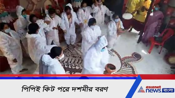 - পিপিই কিট পরে সেখানে বরণ করছেন মহিলারা, চলছে ধুনুচি নাচও