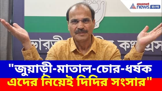 Adhir Ranjan Chowdhury : ধর্মতলায় তৃণমূলের শহীদ দিবসকে চরম কটাক্ষ করলেন অধীর রঞ্জন চৌধুরী। 'জুয়াড়ী-মাতাল-চোর নিয়েই দিদির সংসার' বললেন তিনি। পাশাপাশি বললেন 'চোরা কারবারের স্বর্গ রাজ্য হল বাংলা'।