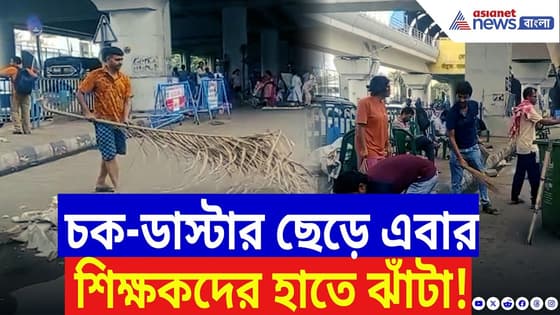 SSC Scam News: চাকরিহারা শিক্ষকরা রাত কাটাচ্ছেন দিনের পর দিন। সেই রাস্তা পরিশকার করলেন আন্দোলনরত শিক্ষকরা। কেউ ঝাঁটা, কেউ নারকেল পাতায় সাফ করলেন রাস্তা।