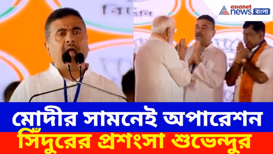 suvendu adhikari on pm modi: শুক্রবার দুর্গাপুরে মেগা জনসভা ছিল প্রধানমন্ত্রী নরেন্দ্র মোদীর। সেই জনসভা থেকে মোদীর সামনেই অপারেশন সিঁদুরের প্রশংসা করলেন রাজ্যের বিরোধী দলনেতা শুভেন্দু অধিকারী। দেখুন কী বলছেন তিনি।