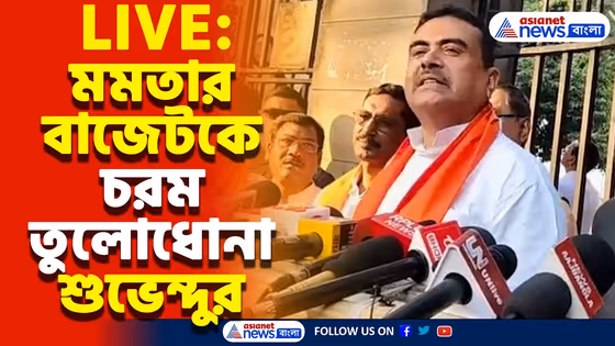 Bengal Budget 2025: রাজ্য বাজেট ঘোষণা করলেন মমতা বন্দ্যোপাধ্যায় (Mamata Banerjee)। মমতার বাজেটকে চরম তুলোধোনা শুভেন্দু অধিকারীর (Suvendu Adhikari), দেখুন সরাসরি এশিয়ানেট বাংলায়।