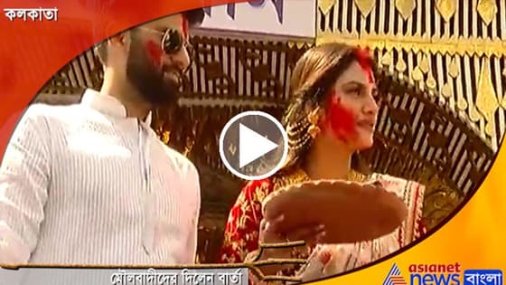 স্বামীকে পাশে নিয়ে সিঁদুর খেললেন নুসরত, দেখুন সেই ভিডিও