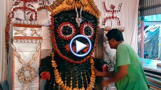 চন্দননগরে বিভিন্ন স্বাদের আম পাওয়া যায় ৷ সেই আমের পরিত্যক্ত তিন হাজার আঁটি দিয়ে জগন্নাথ দেবের অবয়বকে সাজিয়ে তুললেন৷ প্রাথমিক ভাবে উদ্যোক্তাদের স্কেচ করে দেখাতে উদ্যোক্তাদেরও পছন্দ হয় ৷ তারপর থেকেই কয়েক দিনের চেষ্টায় সাড়ে দশ ফুট উচ্চতার এই ঠাকুর তৈরি হয়েছে। ৷