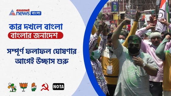 ২ মে সকাল থেকেই রাজ্যে উত্তেজনা ছিল তুঙ্গে। সকাল ৮ থেকে শুরু হয়ে যায় ভওট গণনা। তাতেই বিজেপি পিছিয়ে পড়ে এগিয়ে যায় তৃণমূল। সম্পূর্ণ ফলাফল ঘোষণা না হলেও জয়ের উচ্ছাস শুরু হয়। সবুজ আবির নিয়ে জয়ের উচ্ছাসে মাতেন সকলে। করোনা বিধি সিকেয় তুলেই আনন্দে মাততে দেখা যায় তাঁদের।