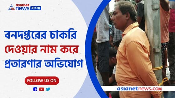 বনদপ্তরের চাকরি দেওয়ার নাম করে প্রতারণা। চাকরি দেওয়ার নাম করে টাকা তোলার অভিযোগ। সুনীল প্রামানিক এবংগনেশ সিং, এই দুই ব্যক্তির বিরুদ্ধে উঠেছে অভিযোগ। পুরুলিয়ার বান্দোয়ান থানার ধাদকা গ্রামের ঘটনা। ওই দুই ব্যক্তিকে খুঁটিতে বেঁধে রাখে গ্রামবাসীরা। খবর পেয়ে ঘটনাস্থলে পৌঁছোয় পুলিশ। পুলিশ গিয়ে দুই ব্যক্তিকে আটক করে। এই নিয়েই এখন শুরু হয়েছে রাজনৈতিক তরজা। এই ঘটনায় তৃণমূলের দিকেই আঙুল তুলছে বিজেপি। অন্যদিকে ঘটনা খতিয়ে দেখার আশ্বাস দিয়েছেন চেয়ারম্যান।