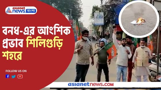 রাস্তায় টায়ার জ্বালিয়ে বিক্ষোভ, বনধ-এর আংশিক প্রভাব শিলিগুড়ি শহরে
