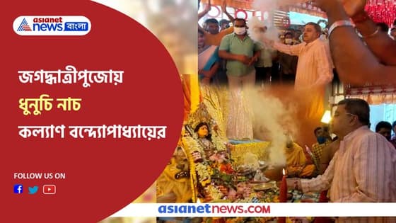 Kalyan Banerjee: জগদ্ধাত্রীপুজোয় ঢাকের তালে কোমর দোলালেন কল্যাণ, ধুনুচি নাচে মাতলেন সাংসদ