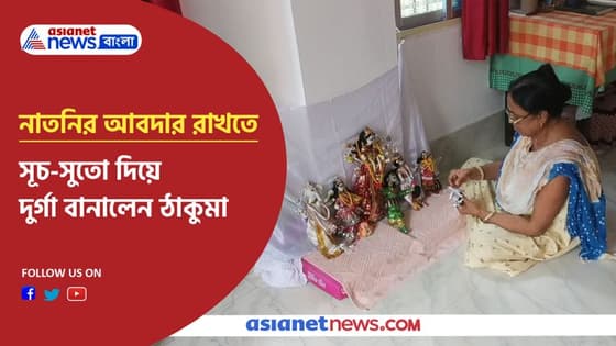 দুর্গা পুজোয় (Durga puja) এবার এক অন্যরূপে মা দুর্গা। নাতনির কথা রাখতে দুর্গা বানালেন ঠাকুমা। তবে খড়-মাটি দিয়ে তৈরি হয়নি এই দুর্গা । নাতনির জন্য কাপড়ের দুর্গা বানালেন ঠাকুমা। বালুরঘাট (Balurghat) শহরের রথতলা পাড়ার বাসিন্দা রুপালী চক্রবর্তী। তিনি কাপড়ের উপর সূচ-সুতো দিয়ে দুর্গা ফুটিয়ে তুলেছেন। শুধু মা দুর্গাই নয় দুর্গার চার ছেলে মেয়েও রয়েছে সঙ্গে। বাড়িতেই কাপড়ের দুর্গা এবার পুজো করবেন তিনি। করোনার কথা মাথায় রেখেই তার এই উদ্যোগ। তার বানানো এই ঠাকুর দেখতে এখ ভিড় জমাচ্ছে পাড়া প্রতিবেশীরা।