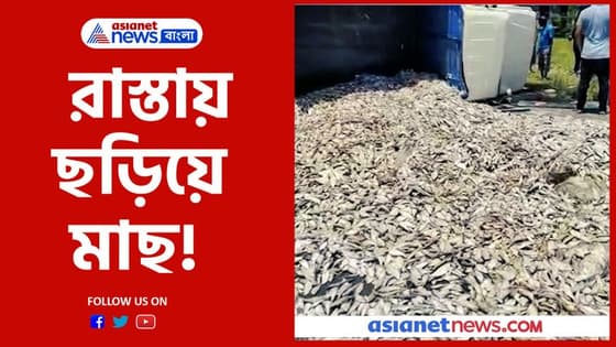 রাস্তায় উল্টে গেল মাছের গাড়ি, রাস্তা জুড়ে ছড়িয়ে পড়ল সামুদ্রিক মাছ