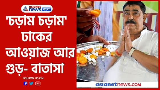 অনুব্রতর গ্রেফতারে, গুড় ও বাতাসা দিয়ে মিষ্টি মুখ, সাথে 'চড়াম চড়াম' ঢাকের শব্দ, অভিনব প্রচার বিজেপির