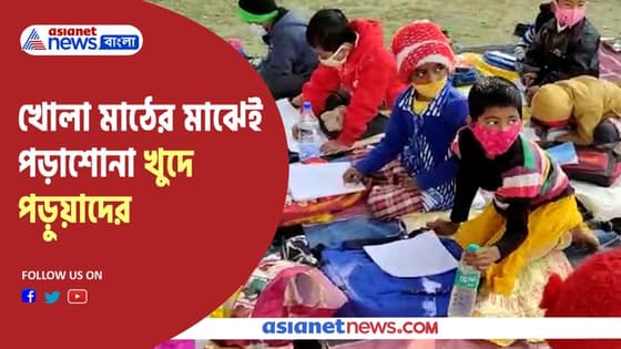 শুরু হয়েছে পাড়ায় শিক্ষালয়, খোলা মাঠের মাঝেই পড়াশোনা খুদে পড়ুয়াদের