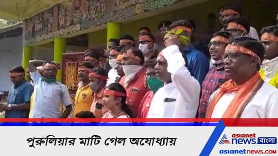 বাদ গেল না পুরুলিয়াও। রাজ্যের প্রান্তিক এই জেলা থেকে রাম মন্দিরের ভূমিপুজোর জন্য মাটি নিয়ে অযোধ্যায় রওনা দিলেন বিজেপি কর্মীরা। উঠল 'জয় শ্রীরাম' ধ্বনি। জনশ্রুতি আছে, পুরুলিয়ার অযোধ্যা পাহাড়ে এসেছিলেন রামচন্দ্র স্বয়ং। পাহাড়ের কোলে রাম মন্দির, সীতাকুণ্ড, লহরিয়া শিবমন্দির দেখতে ভিড় জমান পর্যটকরা। শুক্রবার সকালে পুজাপাঠের পর এই তিন জায়গায় মাটি সংগ্রহ করলেন স্থানীয় বাগমুন্ডি বিধানসভা এলাকার বিজেপি কর্মীরা। হাজির ছিলেন পুরুলিয়া জেলা বিজেপির দুই সাধারণ সম্পাদক বিবেক রাঙ্গা, শঙ্কর মাহাতো, বাগমুন্ডি বিধান সভা এলাকায় দলের আহ্বায়ক জগদীশ কুমার,স্থানীয় নেতা রাকেশ মাহাতো সহ আরও অনেকে। অযোধ্যা পাহাড় থেকে কলসিতে ভরে মাটি প্রথমে নিয়ে যাওয়া হবে ঝাড়খণ্ডের রাঁচিতে। সেখান থেকে উত্তরপ্রদেশের অযোধ্যায়।