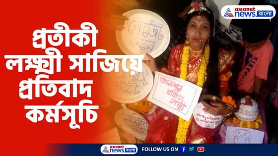 লক্ষ্মী পুজোর দিনে অভিনব বিক্ষোভ আপার প্রাইমারি চাকরি প্রার্থীদের | একজনকে প্রতিকি লক্ষ্মী সাজিয়ে তারা বিক্ষোভ দেখাতে থাকে | এর পাশাপাশি তারা শঙ্খ বাজিয়ে মা লক্ষ্মীর পাঁচালী পড়ে এদিন | মাতঙ্গিনী হাজরার পাদদেশে তারা বিক্ষোভ দেখায় এদিন