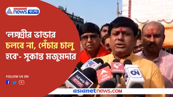 শুক্রবার তারাপীঠ মন্দিরে সুকান্ত মজুমদার। সেখানে তাঁর সঙ্গেই ছিলেন দিলীপ ঘোষও। তারা মায়ের কাছে পুজো দেন তিনি। পুজো দিয়ে বেরিয়ে মুখ্যমন্ত্রীকে কটাক্ষ সুকান্তর। আগামী উপনির্বাচনে দলের জয় নিয়ে আশাবাদী সুকান্ত মজুমদার, এদিন এমন কথাই বলতে শোনা যায় তাঁকে। সেখানে রাজ্যের অর্থনৈতিক অবস্থা নিয়ে মুখ্যমন্ত্রীকে বিঁধতে ছাড়লেন না সুকান্ত মজুমদার। লক্ষ্মীর ভান্ডার নিয়েও মুখ্যমন্ত্রীকে কটাক্ষ করলেন। লক্ষ্মীর ভান্ডার নিয়ে তিনি বলেন 'লক্ষ্মীর ভান্ডার চলবে না পেঁচার চালু হবে সেটাই দেখতে হবে'।