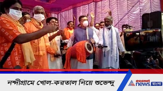 নন্দীগ্রামে খোল-করতাল নিয়ে শুভেন্দু অধিকারী, উদ্বোধন করলেন রাস উৎসবের