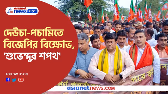 দেউচা-পচামি-তে বৃহস্পতিবার বিক্ষোভ বিজেপির। বিক্ষোভ সমাবেশে হাজির ছিলেন সুকান্ত মজুমদার, শুভেন্দু অধিকারী। দেউচা-পচামি-তে কয়লা খনির জনির জমি অধিগ্রহণ চলছে। রাজ্য সরকারের জমি অধিগ্রহণের বিরোধিতা করছে বিজেপি। শুভেন্দু প্রতিশ্রুতি দিয়েছিলেন দেউচা তিনি যাবেনই। জমি অধিগ্রহণের বিরুদ্ধে প্রথমে পদযাত্রা হয়, এরপর ছিল সমাবেশ। সেখানে বক্তব্য রাখতে গিয়ে শুভেন্দু রাজ্য সরকারকে আক্রমণ করেন।