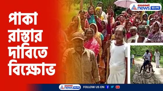 বেহাল কাঁচা রাস্তা, পাকা রাস্তার দাবিতে নামখানায় বিক্ষোভে সামিল এলাকার মানুষজন