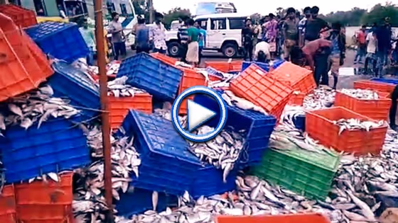 রাস্তায় ছড়িয়ে হাজার হাজার ইলিশ, দেখতে ভিড় কাকদ্বীপে, দেখুন ভিডিও