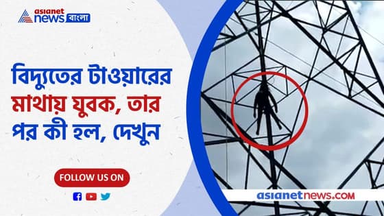 হাইটেনশন বিদ্যুতের টাওয়ারের মাথায় যুবক