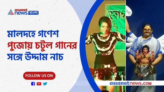 মালদহে মমতারূপী দুর্গাকে পাশে রেখে চটুল গানের সঙ্গে উদ্দাম নাচ