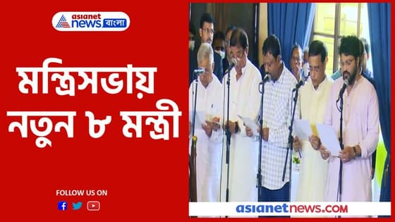মমতা বন্দ্যোপাধ্যায়ের মন্ত্রিসভায় নতুন ৮ মন্ত্রী। শপথ নিলেন বাবুল সুপ্রিয়, পার্থ ভৌমিক, তাজমুল হোসেন। শপথ নিলেন উদয়ন গুহ, স্নেহাশিস চক্রবর্তী, প্রদীপ মজুমদার। শপথ নিয়েছেন বিপ্লব রায়চৌধুরী, সত্যজিৎ বর্মণ, বীরবাহা হাঁসদা। পূর্ণমন্ত্রী হলেন- প্রদীপ মজুমদার, পার্থ ভৌমিক, উদয়ন গুহ। পূর্ণমন্ত্রী হলেন- বাবুল সুপ্রিয়, স্নেহাশিস চক্রবর্তী। স্বাধীন দায়িত্বপ্রাপ্ত মন্ত্রী- বীরবাহা হাঁসদা, বিপ্লব রায়চৌধুরী। প্রতিমন্ত্রী- সত্যজিৎ বর্মণ, তাজমুল হোসেন।