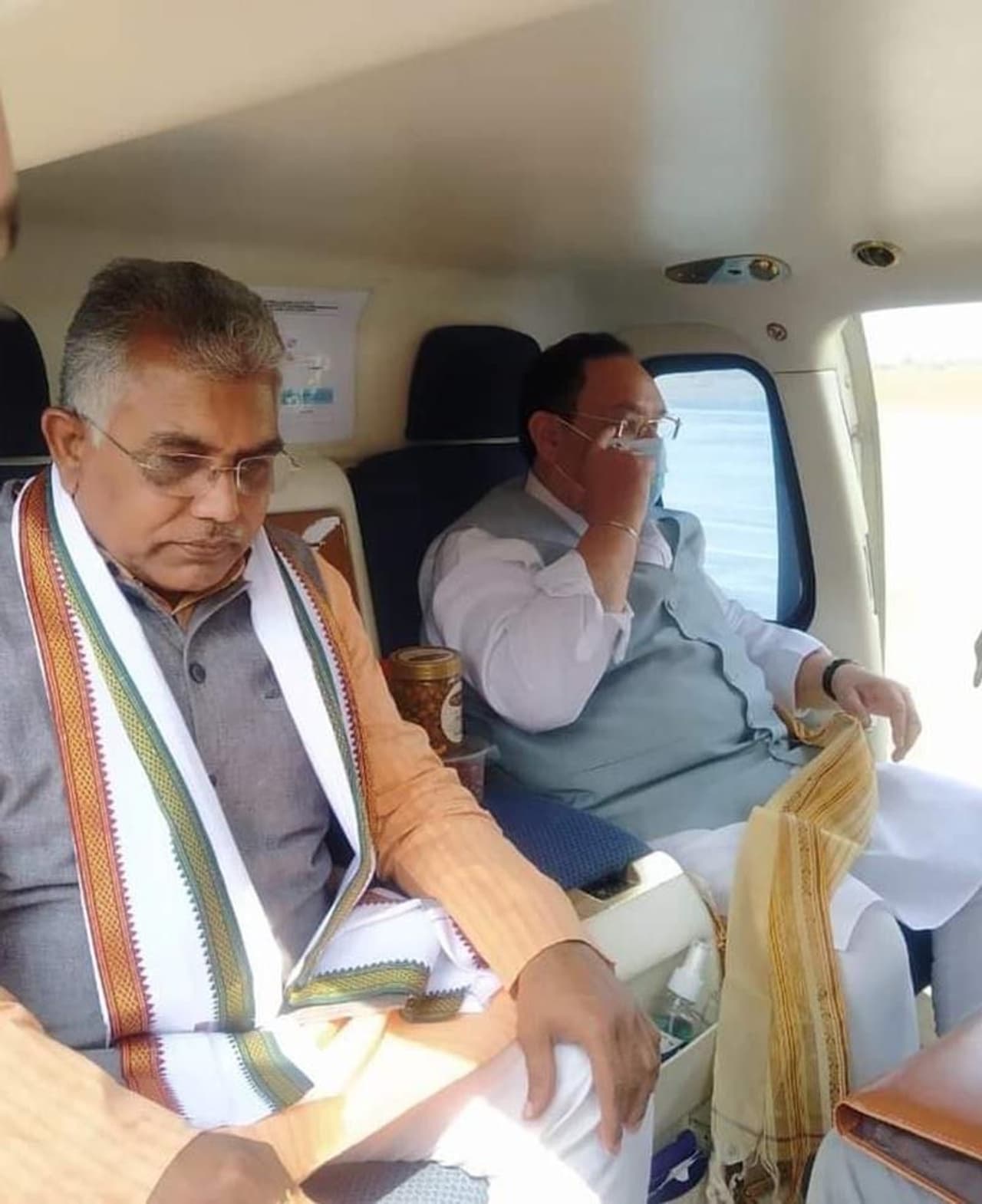 তারাপীঠে যাওয়ার পথে হেলিকপ্টারে নাড্ডা