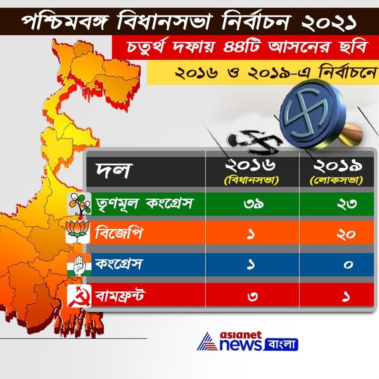 গত বিধানসভা ও লোকসভা নির্বাচবনের ফলাফল বিশ্লেষণ করে দেখা গেছে উত্তরবঙ্গে ২০১৬র বিধানসভা নির্বাচনে একচ্ছত্র রাজ করেছিল তৃণমূল কংগ্রেস। কোচবিহার ও আলিপুরদুয়ারে বাম ও কংগ্রেস প্রার্থীদের পিছনে ফলে সহজেই জয় পেয়েছিল তৃণমূল। গত বিধানসভা নির্বাচনেও সেভাবে মাথা তুলতে পারেনি বিজেপি। কিন্তু সম্পর্ণ ছবিটাই বদলে গেছে লোকসভা নির্বাচনে। উত্তরবঙ্গে অধিকাংশ আসনেই তণমূল কংগ্রেসকে পিছনে ফেলে খুব সহজেই জয় হাসিল করেছে বিজেপি। আর বিধানসভা নির্বাচনে কোচবিহার উত্তরে জয়ী হয়েছিলে ফরোয়ার্ডব্লক প্রার্থী ও মাদারিহাট দখল করেছিল বিজেপি। লোকসভা ভোটের নিরীখে একাধিক কেন্দ্রেও এগিয়ে রয়েছে বিজেপি। কোচবিহার জেলার সিতাই ছাড়ার বাকি সবকটি কেন্দ্রে লোকসভা নির্বাচনে এগিয়ে ছিল বিজেপি। আর সেই কারণেই চতুর্থ দফার নির্বাচনকে রীতিমত গুরুত্ব দিয়ে দেখছে বিজেপি। বিধানসভা ভোটের অনেক আগেই উত্তরবঙ্গের জেলাগুলিতে জনসংযোগ বাড়াতে ও দলীয় নেতা কর্মীদের উৎসাহিত করতে একাধিকহার এসেছেন সর্বভারতীয় বিজেপি সভাপতি জেপি নাড্ডা ও অমিত শাহ। বিধানসভার ভোট প্রচারে জনসভা করেছেন প্রধানমন্ত্রী নরেন্দ্র মোদীও।
