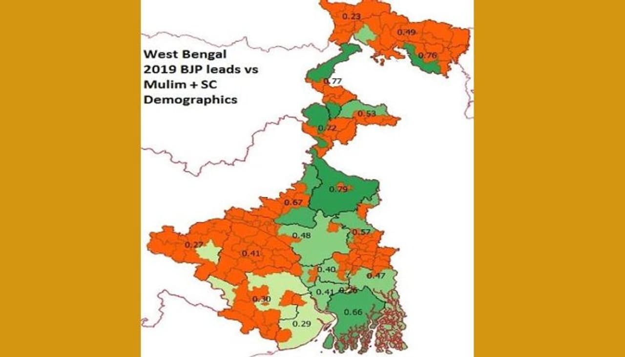 উপরোক্ত ছবিগুলিতে ভোট শেয়ারিং-এর চিত্র বিশ্লেষণের পর আমরা এই উপসংহারে আসতে পারি যে দক্ষিণবঙ্গের যে সমস্ত এলাকায় মুসলিম ও দলিত মিলে ৫০ শতাংশের বেশি ভোটার রয়েছে, সেখানে তৃণমূলের জোর বেশি। ক্ষমতায় আসতে হলে বিজেপিকে অবশ্য এই কেন্দ্রগুলোর উপরে বিশেষ নজর দিতে হবে। পাশাপাশি এটাও বলা যায়, এবারের বিধানসভা ভোটের ফল দু’টো বিষয়ের উপরে নির্ভর করছে। এক, দলিত ভোট কতটা বিজেপি টানতে পারল। দুই, মুসলিম ভোট কতটা বাম-কংগ্রেস-আইএসএফ জোটের দিকে গেল। এই দু’টো শক্তি যখন পূর্ণমাত্রায় কাজ করবে, তখনই তৃণমূলের মুসলিম + দলিত ভোটব্যাঙ্ককে রোখা যাবে।