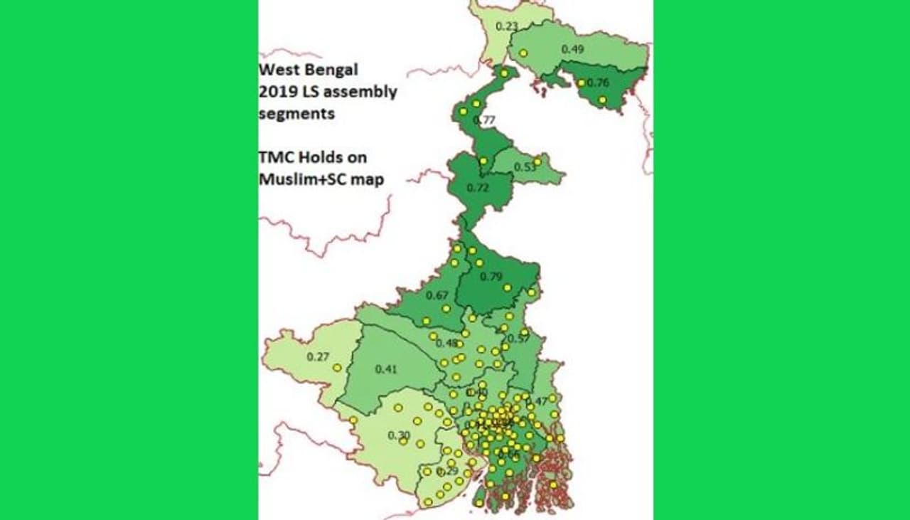 ১০। কিন্তু, উপরোক্ত বিষয়টিকে আবার পুরোপুরি মান্যতা দিলে হবে না। কারণ, রাজ্যে এমনকিছু এলাকা রয়েছে যেখানে তৃণমূল এবং সংখ্যালঘু মুসলিমদের মধ্যে যে জোট তা অটুট ছিল। কিন্তু সেখানে বিজেপি-র উত্থান আটকায়নি। সেইসঙ্গে জলপাইগুড়ি আর কোচবিহারকে এই ট্রেন্ডের বাইরেও রাখতে হবে। কারণ এখানে সম্পূর্ণ ভিন্ন রাজনীতি চলে।