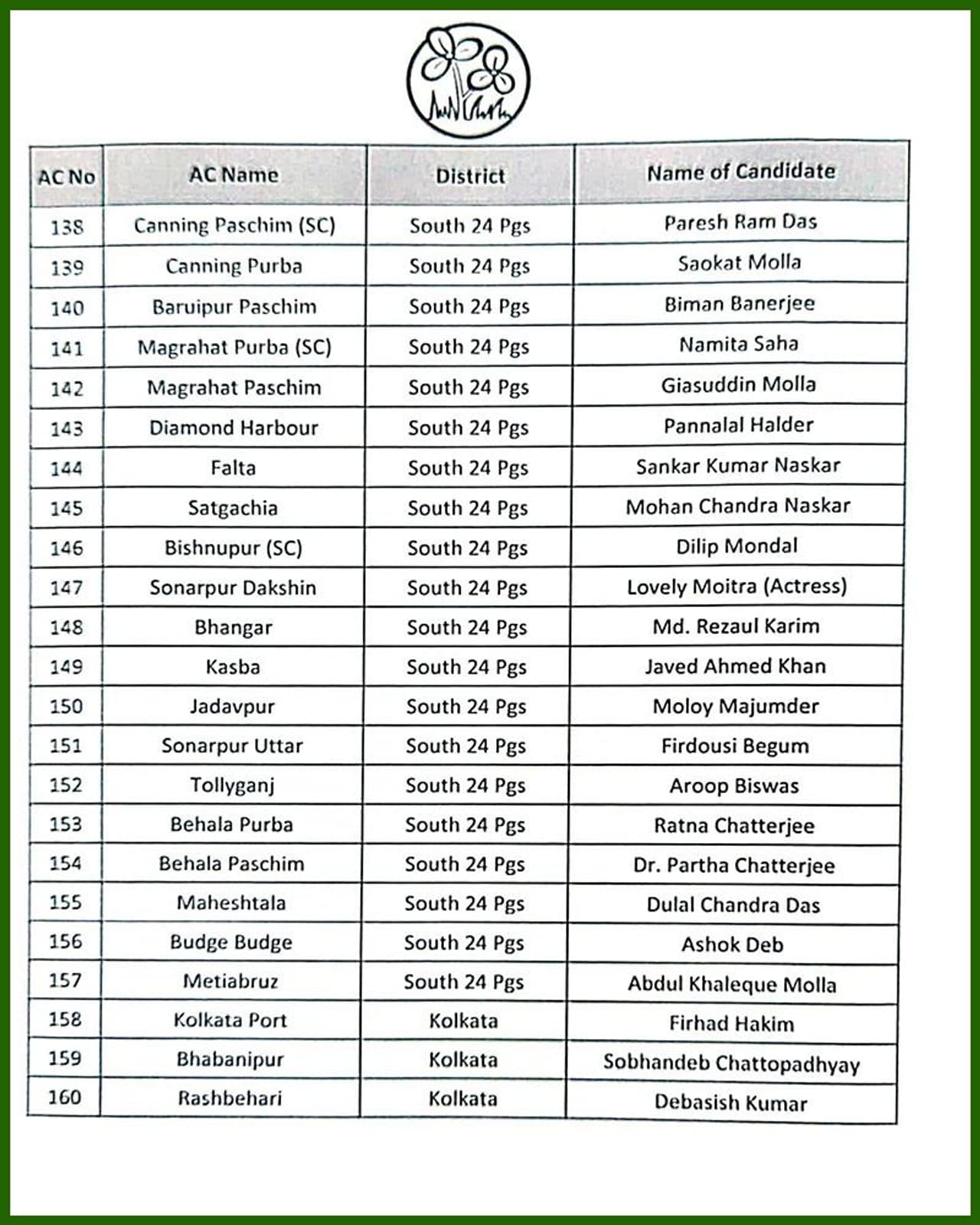 দেখে নিন তৃণমূলের পূর্ণাঙ্গ প্রার্থী তালিকা -