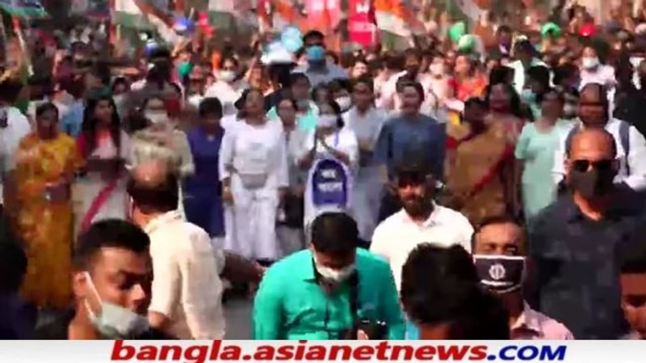 জ্বালানীর মূল্যবদ্ধির প্রতিবাদে মহামিছিলে নেমেছেন মমতা