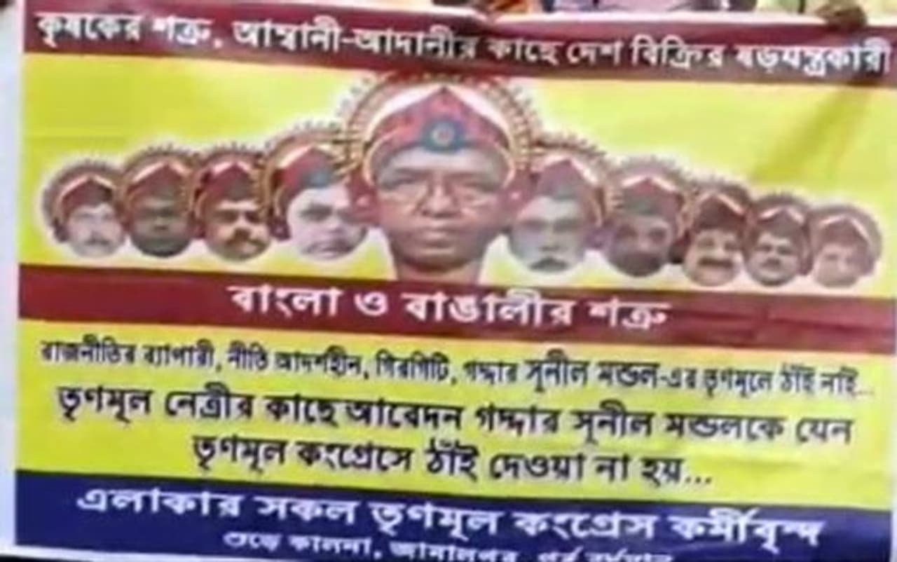 সুনীল মণ্ডলের দলে ফেরা নিয়ে ক্ষোভ প্রকাশ তৃণমূল কর্মীদের জামালপুরে তাঁকে 'রাবণ' সাজিয়ে পোস্টার পড়ল তাঁকে 'রাবণ রাজনীতিক' রূপ দেওয়া হয়েছে ওই পোস্টারে সুনীল মণ্ডলকে 'বাংলা ও বাঙালির শত্রু' বলা হয়েছে