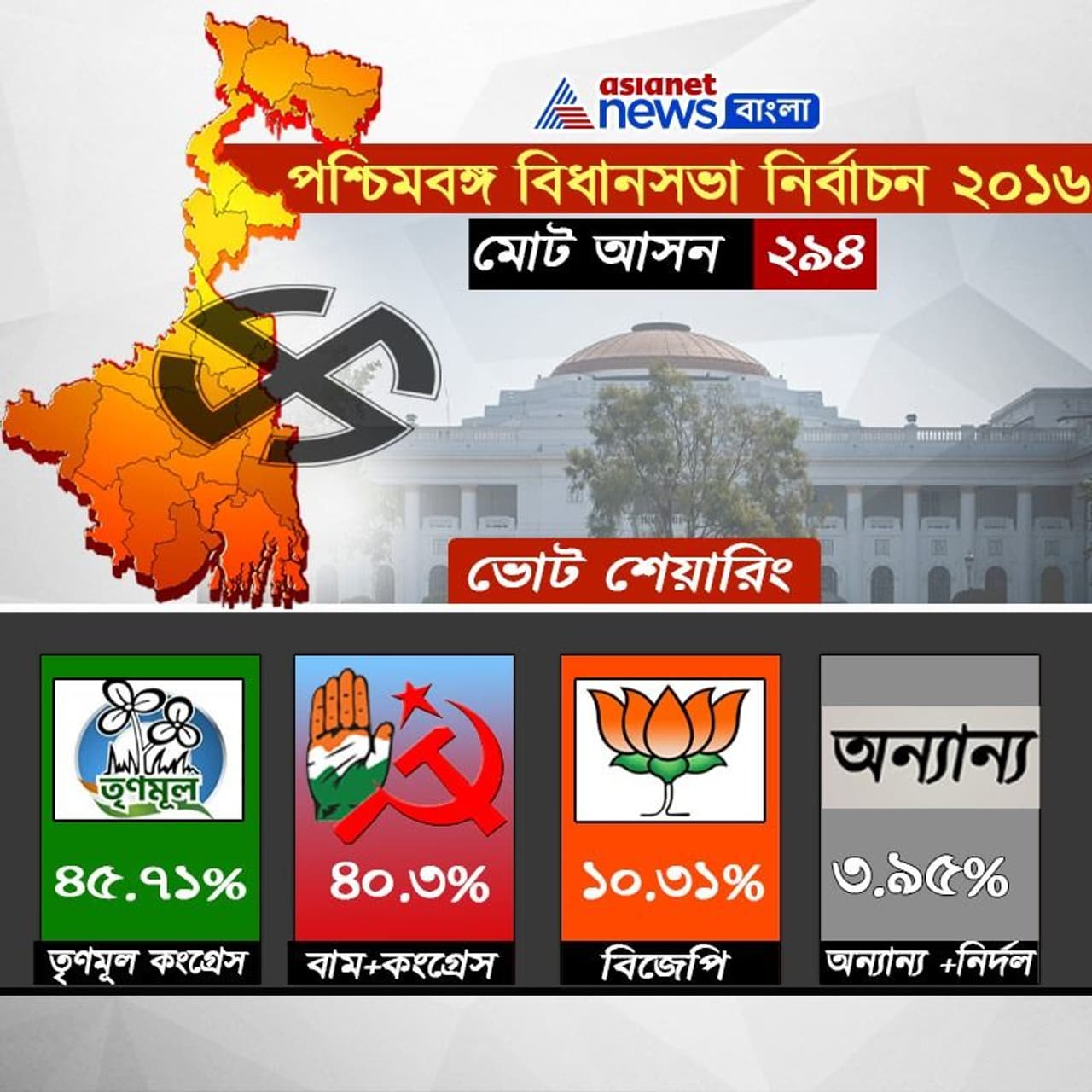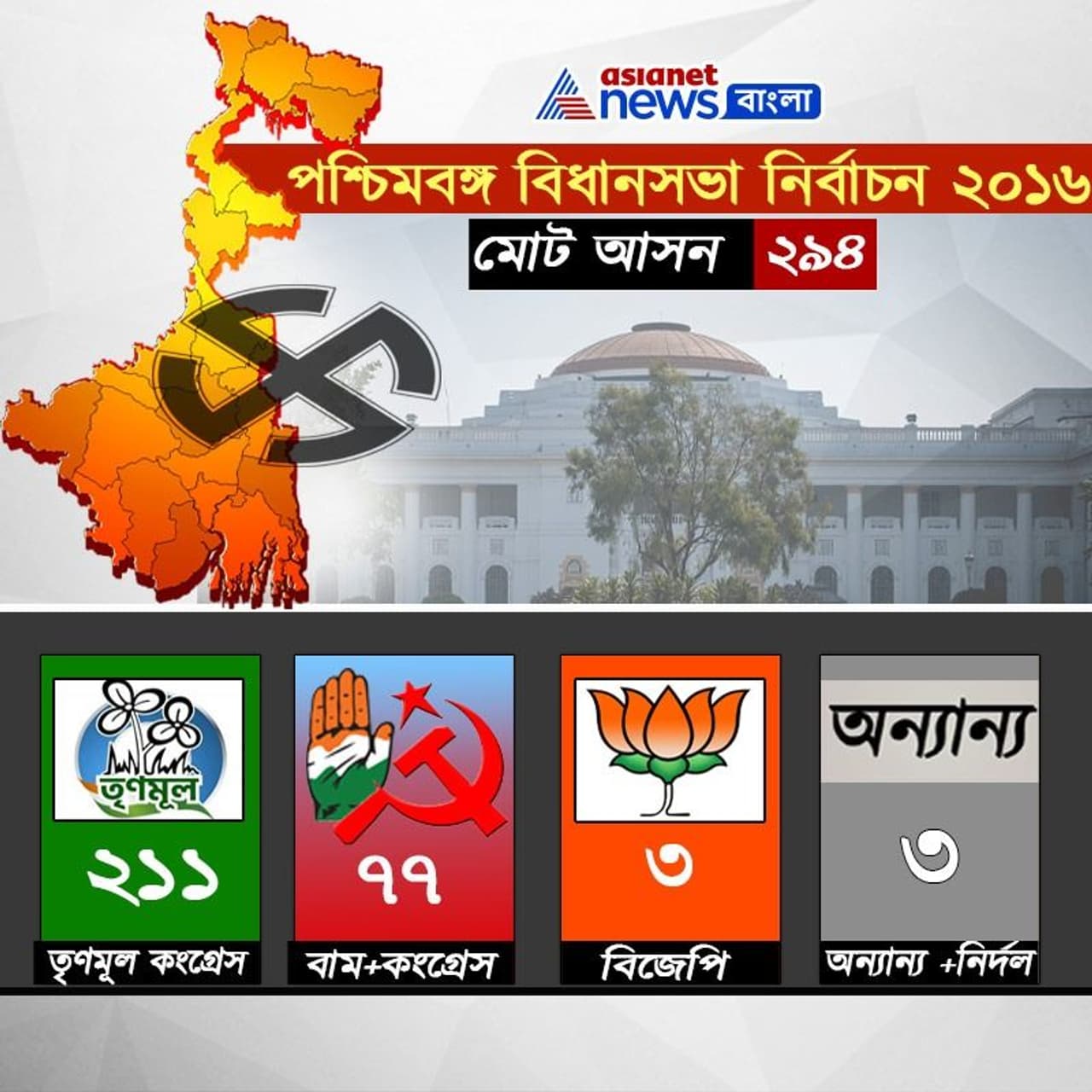 ২৯৪ আসনের পশ্চিমবঙ্গ বিধানসভায় সরকার গঠনের যাদু সংখ্যা ১৪৮। গত বিধানসভা নির্বাচনে একক সংখ্যাগরিষ্ঠ দল হিসেবেই রাজ্যে সরকার গঠন করেছিল তৃণমূল কংগ্রেস। পাশে পেয়েছিল গোর্খা জনমুক্তি মোর্চারতিন বিধায়কের সমর্থন। বাম আর কংগ্রেস জোটের আসন সংখ্যা ছিল ৭৭। বিজেপি মাত্র তিনটি আসন দখল করতে পেরেছিল। আর নির্দল বিধায়কের সংখ্যা ছিল ৩।