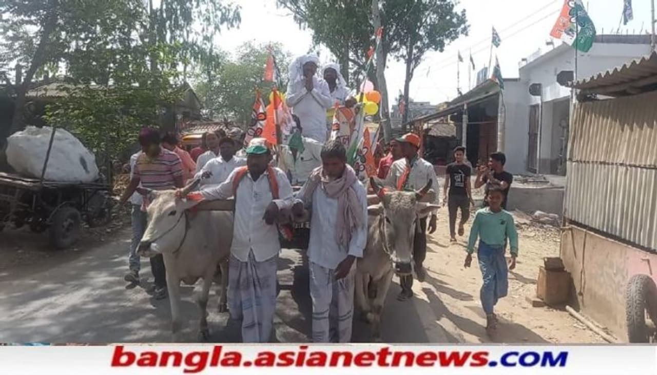 পেট্রোল ডিজেলের অস্বাভাবিক মূল্যবৃদ্ধির প্রতিবাদ জানিয়ে গরুর গাড়ি চেপে অভিনব নির্বাচনী প্রচার সারলেন করনদিঘী বিধানসভা কেন্দ্রের তৃনমূল কংগ্রেস প্রার্থী তথা উত্তর দিনাজপুর জেলা যুব তৃণমূল কংগ্রেস সভাপতি গৌতম পাল।