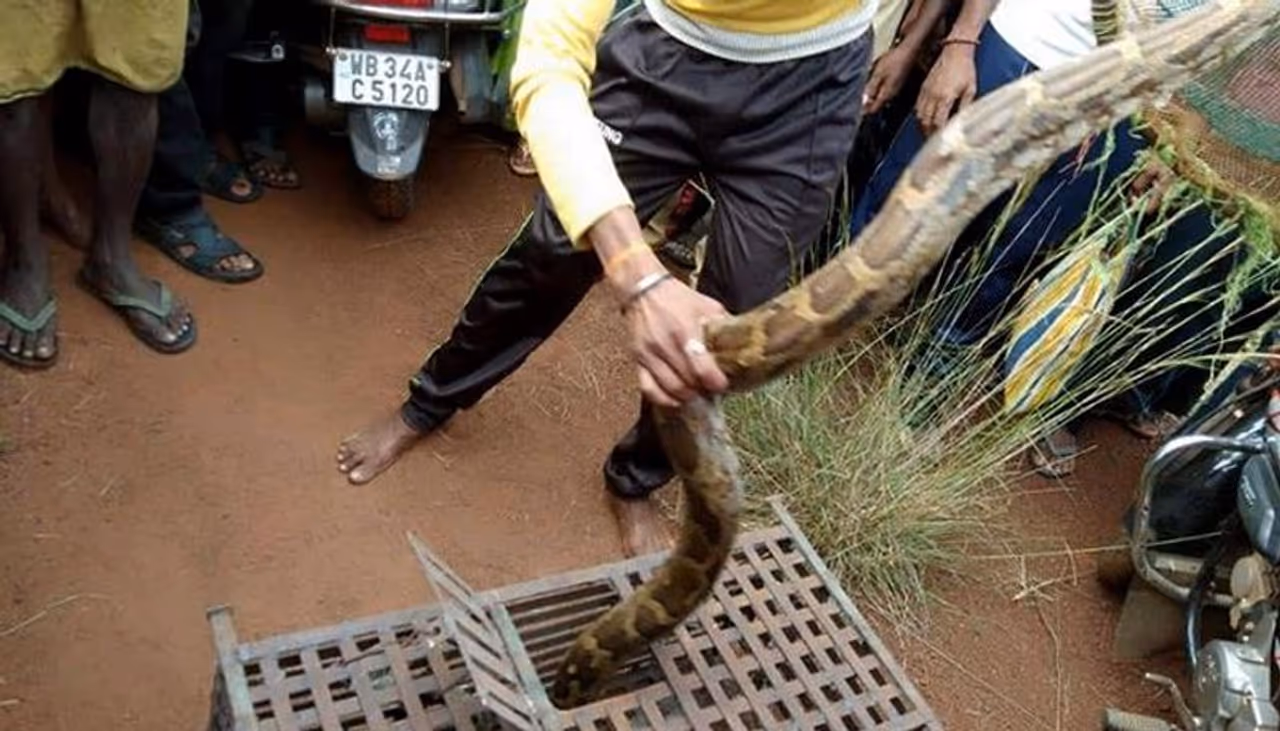 ১০ ফুট লম্বা পাইথনটিকে ঝাড়গ্রামের সাঁকরাইল ব্লকের পাথরা গ্রামপঞ্চায়েতের প্রতাপপুরে পাওয়া গিয়েছে। সকালে প্রাতভ্রমণে বেরিয়ে নয়ানজুলিতে এটিকে দেখতে পান স্থানীয়রা। আতঙ্ক তৈরি হয় গ্রামজুড়ে।