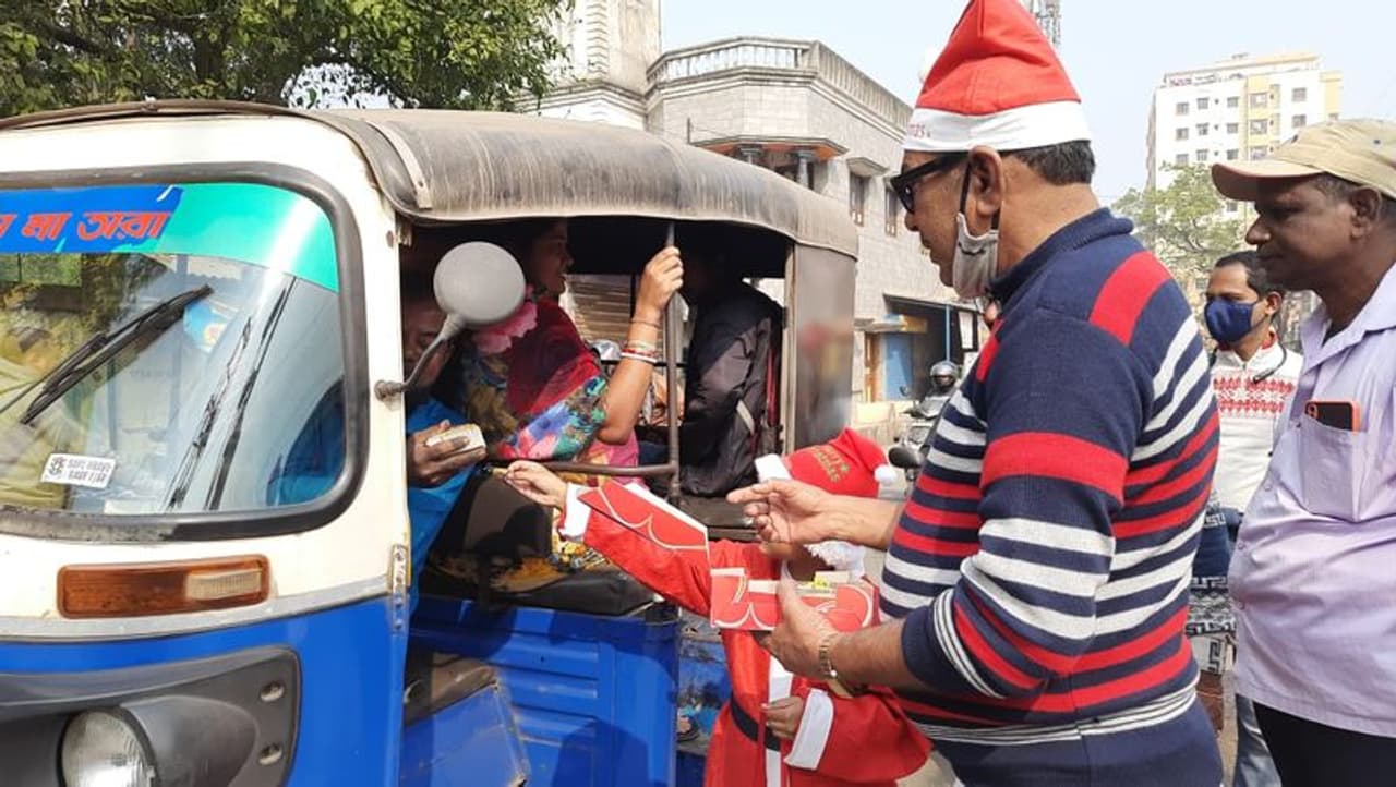 বড়দিন (Christmas Day) মানেই কেক (Cake) আর উপহার (Presentation)। আর তার সঙ্গে পরিবারের সঙ্গে ঘুরতে যাওয়া। সেই আনন্দ গায়ে মেখে সকাল থেকেই শহরের বিভিন্ন প্রান্তে ভিড় উপচে পড়ছে। কচি-কাঁচা থেকে শুরু করে বড়রা, শীতের আমেজ (Winter Season) গায়ে মেখে বড়দিনের আনন্দে সামিল হয়েছেন সবাই। কিন্তু, অসহায় পথশিশু বা ফুটপাথবাসীর ক্ষেত্রে এই দিনটাও বাকি পাঁচটা দিনের সমান। অন্যরকম কোনও আনন্দই নেই। আর এবার তাদের জন্য স্যান্টাক্লজের (Santa Claus) ভূমিকায় দেখা গেল প্রশাসনের আধিকারিকদের।