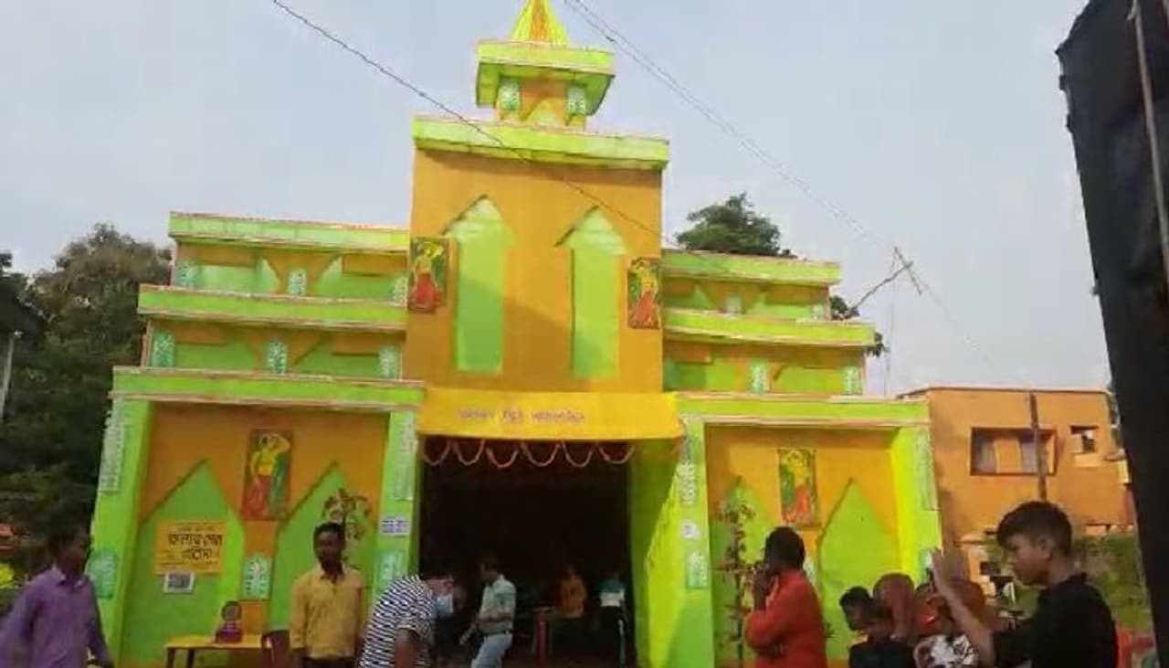 করোনার কারণে তৈরি হয়েছে আর্থিক সমস্যা(Financial Crisis)। শহরে থিমের পুজো(Theme) দেখতে যাওয়ার সামর্থ্য নেই। প্রান্তিক গ্রামের(Village) মানুষের কথা ভেবে গ্রামের শিল্পী(Local Artists) দিয়ে বানানো হলো মূর্তি(Durga Idol)। তৈরি করা হলে মন্ডপ। আগামী বছর আরো বড় করে থিমের পুজো করার ভাবনা গ্রামবাসীদের।