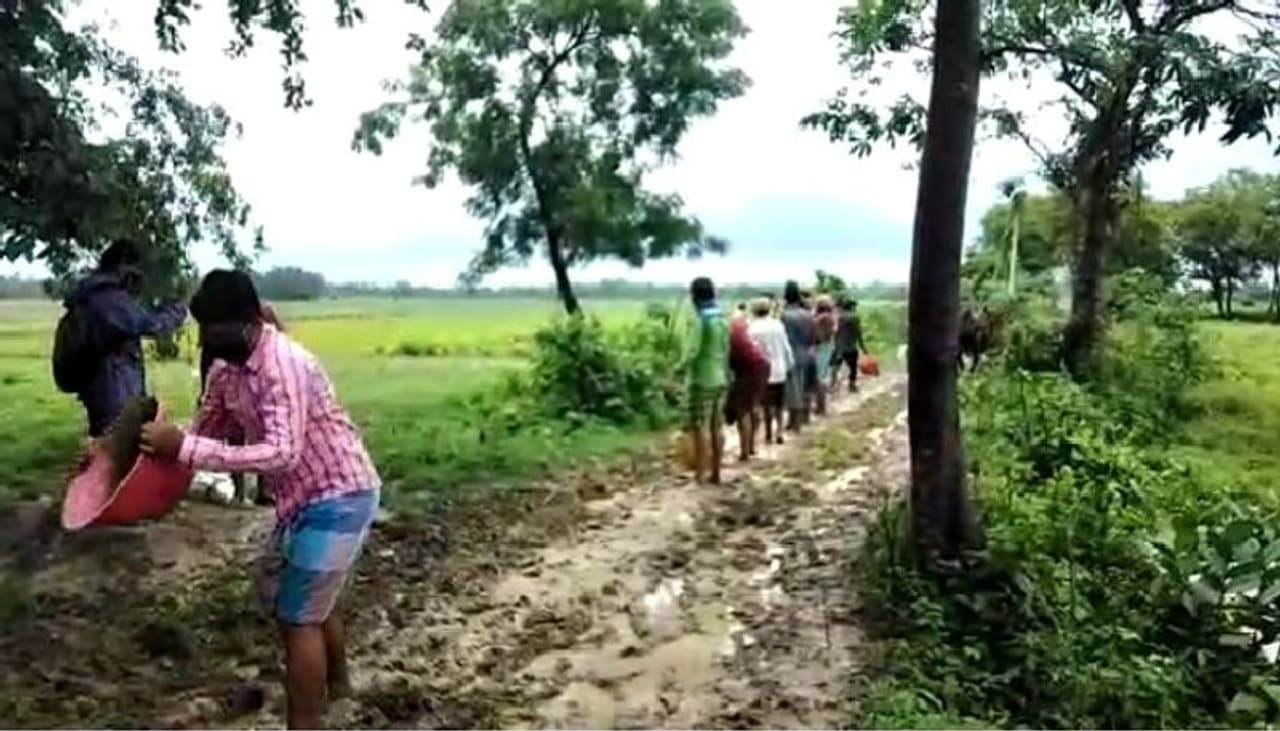 শ্বশুরবাড়ির গ্রামের রাস্তার বেহাল দশা বেহাল রাস্তা তৈরিতে হাত লাগালেন জামাইরা কাঁচা রাস্তায় পড়ল মাটির প্রলেপ জামাইষষ্ঠীতে এসে গ্রামকে উপহার জামাইদের