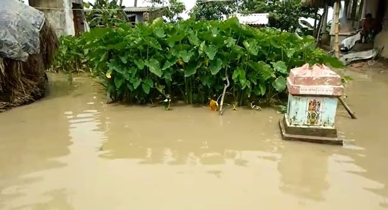 গত কয়েকদিনের টানা বৃষ্টিতে জলমগ্ন হয়ে পড়েছে ঘর-বাড়ি ও চাষের জমি। অনেক জায়গায় বৃষ্টির দাপটে কাঁচাবাড়িও ভেঙে পড়েছে। এখনও পর্যন্ত কয়েকটি জায়গায় ধানের জমিতে বুক সমান জল জমে রয়েছে। সেখানে জল এতটাই বেশি যে চাষের জমির পরিবর্তে সেটিকে নদী ভেবে ভুল করবেন অনেকেই। আবার কারও বাড়ির উঠোনেও ভর্তি রয়েছে জল। ডুবে গিয়েছে তুলসী মঞ্চ। এখনও পর্যন্ত অনেকের ঘর থেকে জল বের হতে পারেনি। ফলে বেজায় সমস্যায় পড়েছেন স্থানীয় বাসিন্দারা।