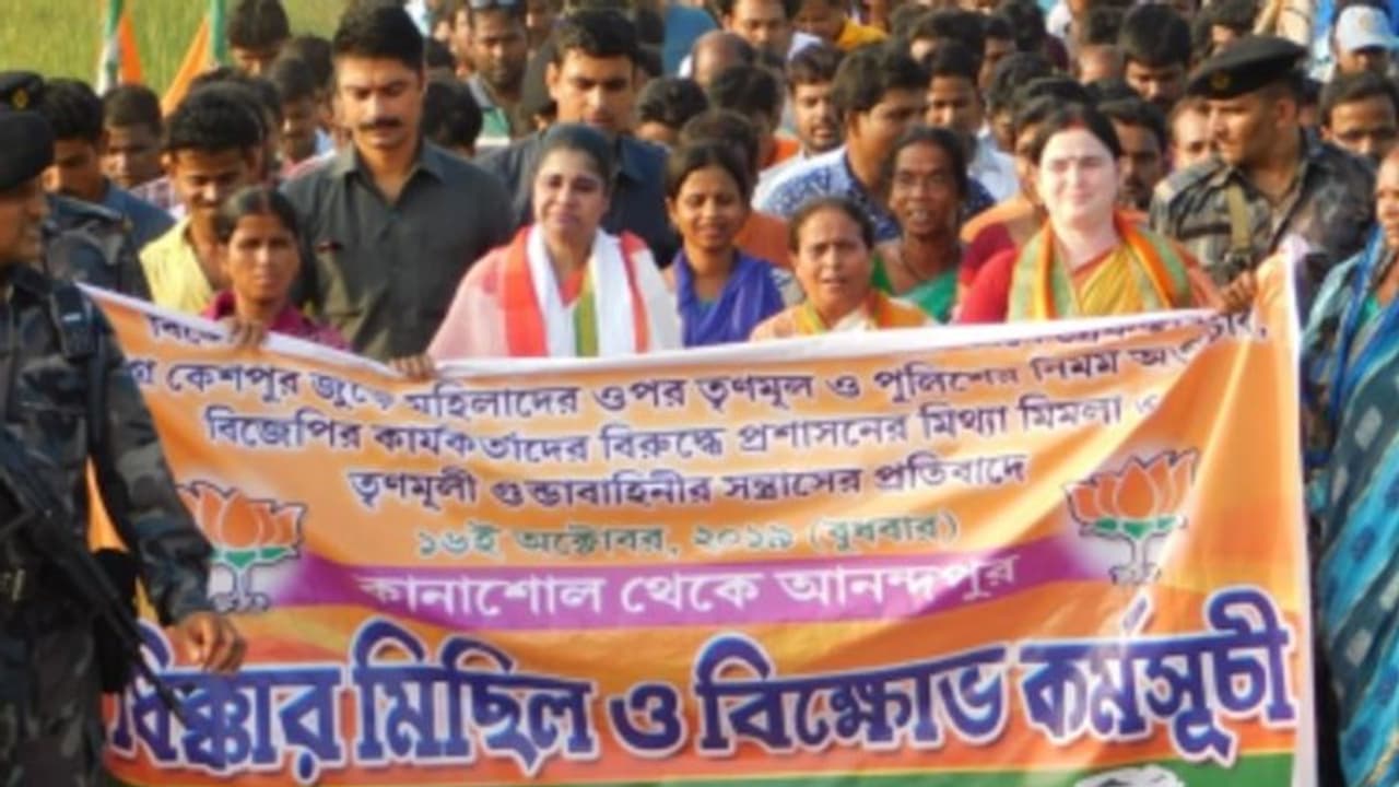 গত কয়েকমাস ধরে পশ্চিম মেদিনীপুরের কেশপুর ও আনন্দপুরে রাজনৈতিক সংঘর্ষ লেগেই রয়েছে ৷ তৃণমূল ও বিজেপি দুই পক্ষের বহু রাজনৈতিক কর্মী জখম হয়েছেন ৷ গুলিবিদ্ধ হওয়ার ঘটনাও ঘটেছে ৷ এরপরই বিজেপি নেতা তন্ময় ঘোষ ও জাহাঙ্গির আলি সহ বেশ কয়েকজনকে গ্রেফতার করেছে পুলিশ ৷ এই পরিস্থিতিতে সন্ত্রাস কবলিত আনন্দপুরে প্রতিবাদী অহিংস মিছিল করলেন বিজেপি নেত্রী ভারতী ঘোষ ৷ কয়েক হাজার কর্মী সমর্থকদের নিয়ে কানাশোল থেকে আনন্দপুর পর্যন্ত প্রায় দশ কিমি পদযাত্রা করেন তিনি৷