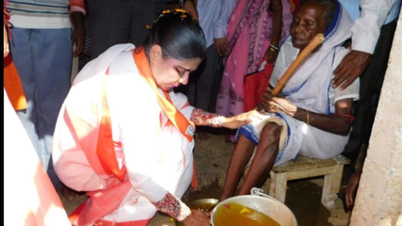 সেবা সপ্তাহে সেবায় ব্রতী হলেন রাজ্য় বিজেপির সহ সভাপতি ভারতী ঘোষ খাইয়ে কাপড় বিলিয়ে শেষে প্রবীণার পা ধুইয়ে দিলেন এই বিজেপি নেত্রী প্রধানমন্ত্রীর জন্মদিনের সপ্তাহকে সেবা সপ্তাহ হিসাবে পালন করছে বিজেপি