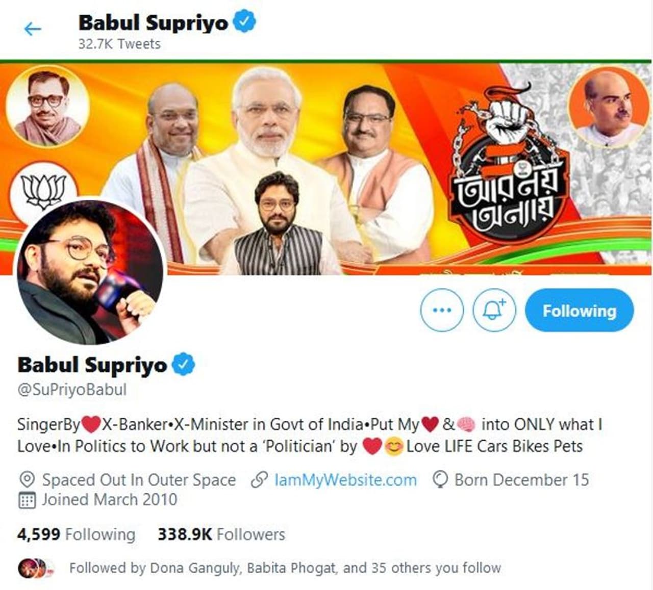 শুধু ফেসবুক নয়, টুইটারেও বাবুলের এই দুঃখ ধরা পড়েছে। টুইটারের বায়োডেটা অংশে বেশ কিছু অদলবদল ঘটিয়েছেন প্রাক্তন কেন্দ্রীয় মন্ত্রী। নিজের পরিচয় দিয়েছেন 'সিঙ্গার বাই হার্ট, প্রাক্তন ব্যাঙ্কার এবং ভারত সরকারের প্রাক্তন মন্ত্রী' বলে। সঙ্গে স্পষ্ জানিয়েছেন, মানুষের কাজ করার জন্য়ই তিনি রাজনীতি করেন, ভালবেসে নয়। তিনি যা ভালবাসেন, তাতে তাঁর হৃদয় এবং মস্তিষ্ক দুটোই দেন। তাঁর ভালবাসার তালিকায় নেই রাজনীতি, বরং রয়েছে গাড়ি, বাইক এবং পোষ্য।
